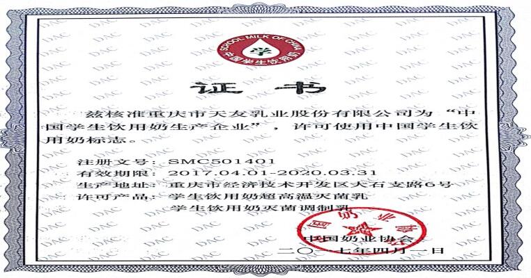 “中国学生饮用奶生产企业”荣誉的获得,充分体现了国家对天友乳业公司学生饮用奶工作的肯定。未来,天友乳业公司将不辱使命,本着对祖国未来高度负责的精神,按照“安全、营养、方便、价廉”的原则,积极推进学生饮用奶工作,为改善民族体质贡献力量。