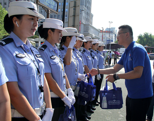 作为“华山牧酸奶全城送达”活动的揭幕仪式,早晨9点,活动主办单位的领导和工作人员沿着西安最核心区域的中轴线,分别慰问了在烈日下仍坚守在一线的西华门岗亭、南稍门岗亭、小寨岗亭的交警同志,并为这些可爱可敬的交警送去了华山牧的高品酸奶。下午,活动相关人员还继续慰问了西安交警指挥中心及碑林区四中队。